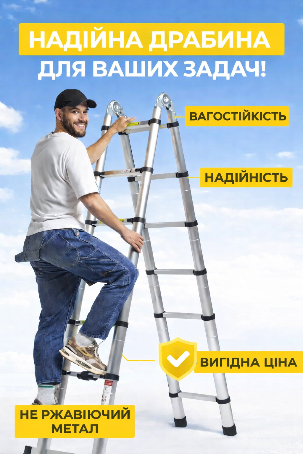 Підходить для універсального використання вдома, в гаражі, на дачі, на будівельних об’єктах та під час виїзних робіт — для всіх, кому потрібен швидкий і безпечний доступ до висоти.