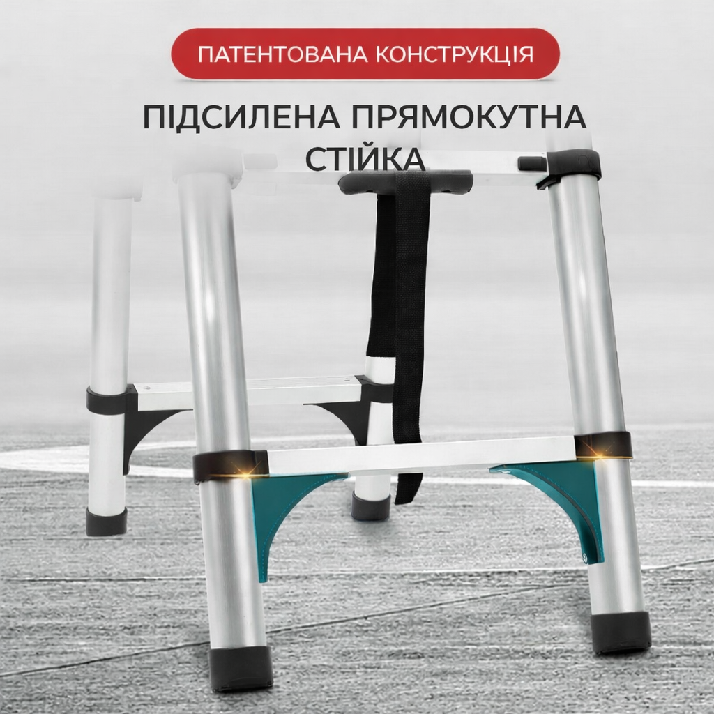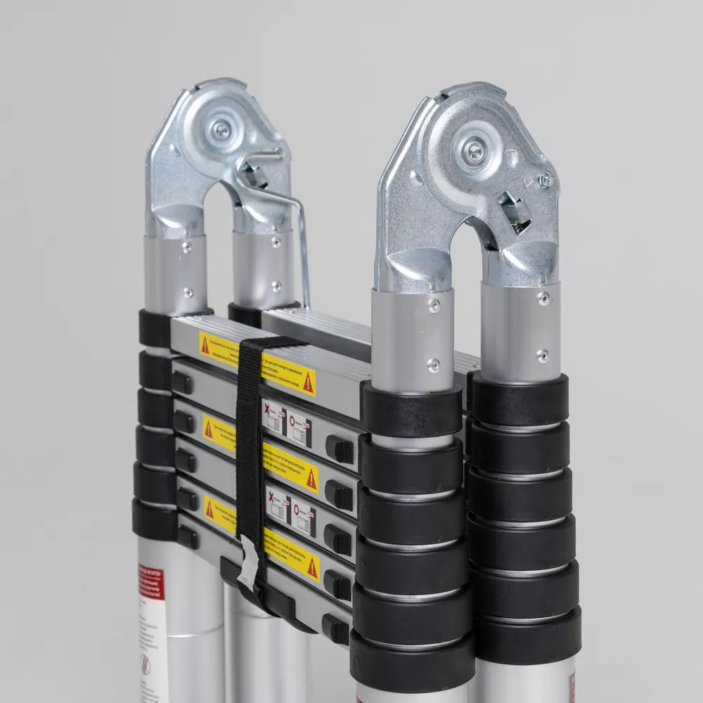 Виготовлені з легкого, але надміцного алюмінієвого сплаву, телескопічні сходи витримують значні навантаження. Протиковзкі сходинки та надійні фіксатори забезпечують впевнене стояння і стабільність на різних типах поверхонь.