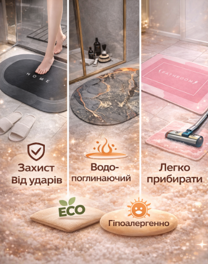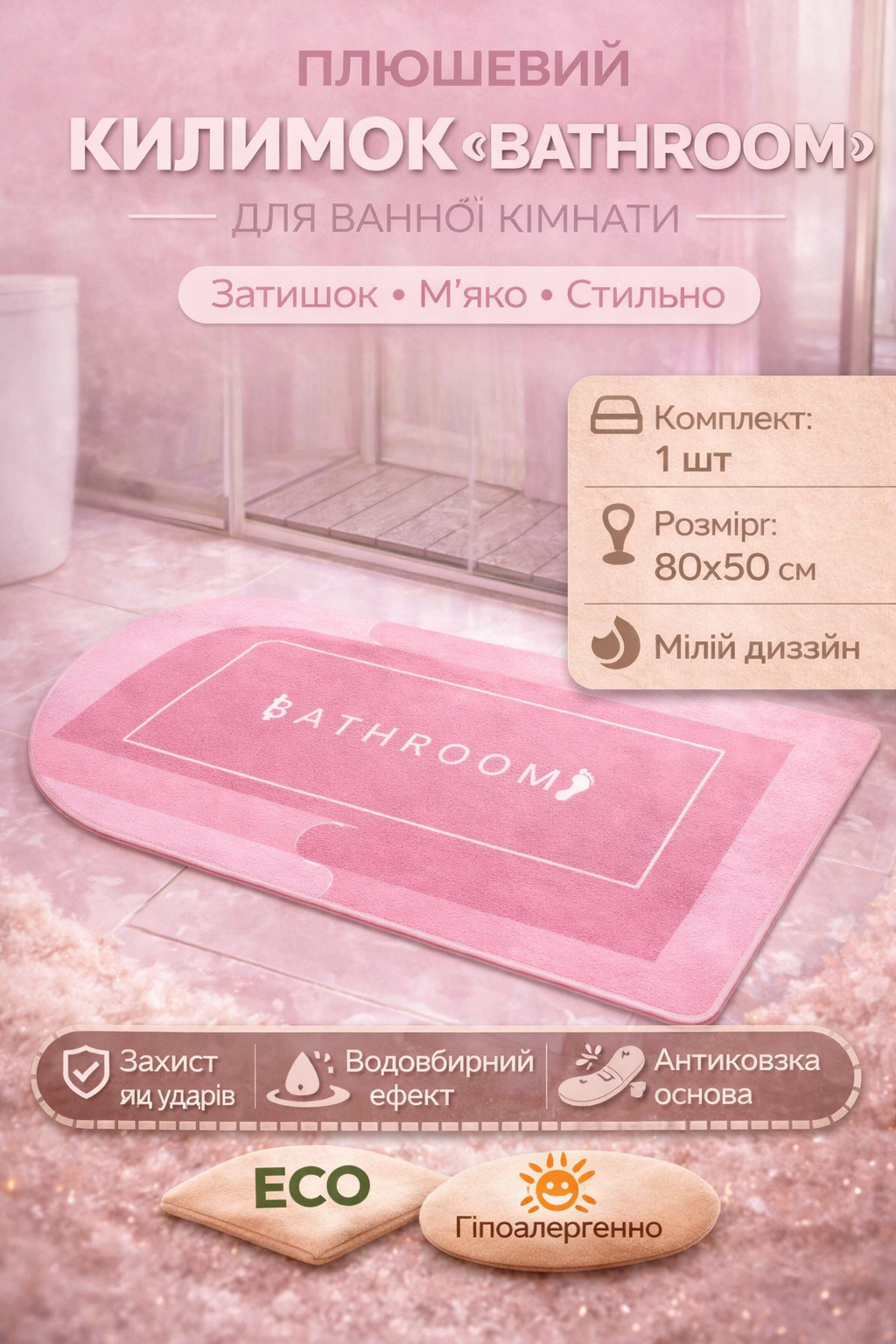 М’який килимок з приємною на дотик поверхнею створює комфортну зону у ванній кімнаті. Забезпечує приємні відчуття для ніг після душу та додає відчуття тепла.