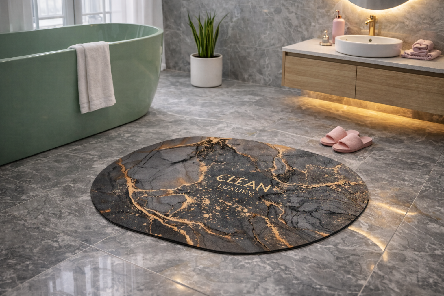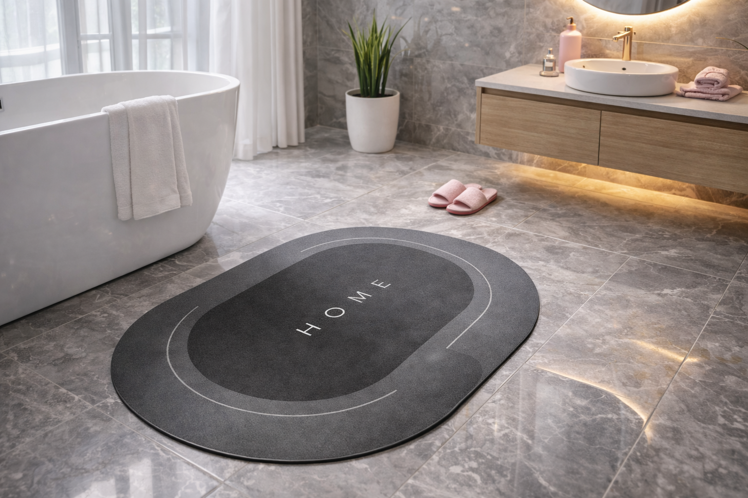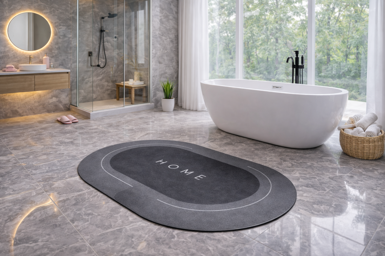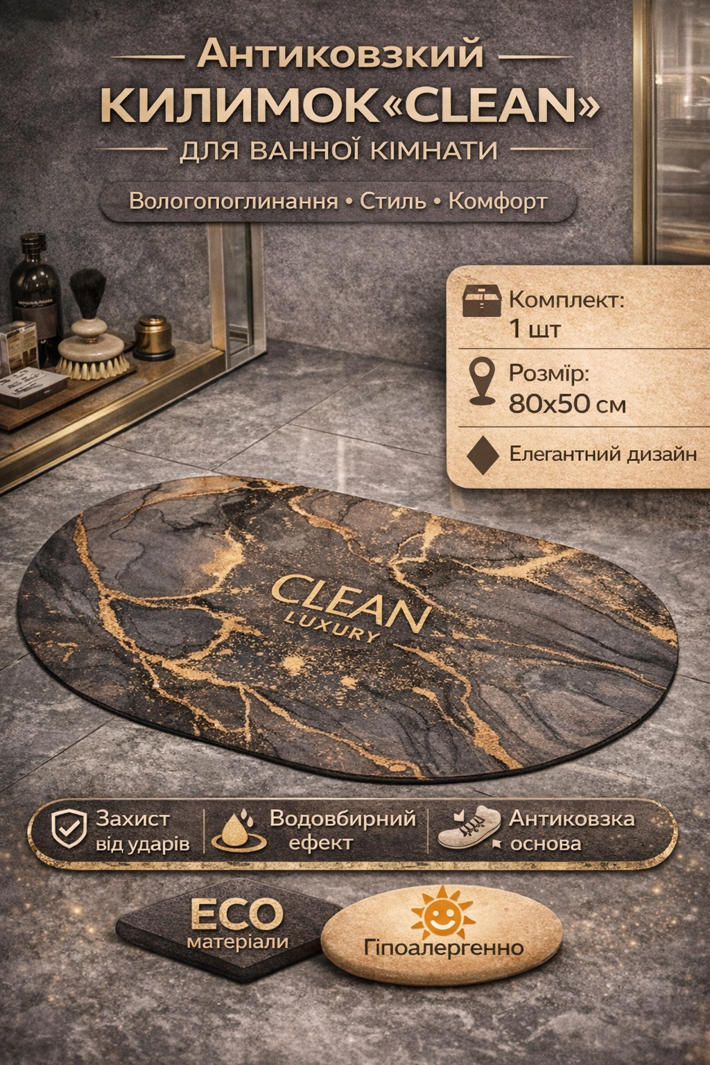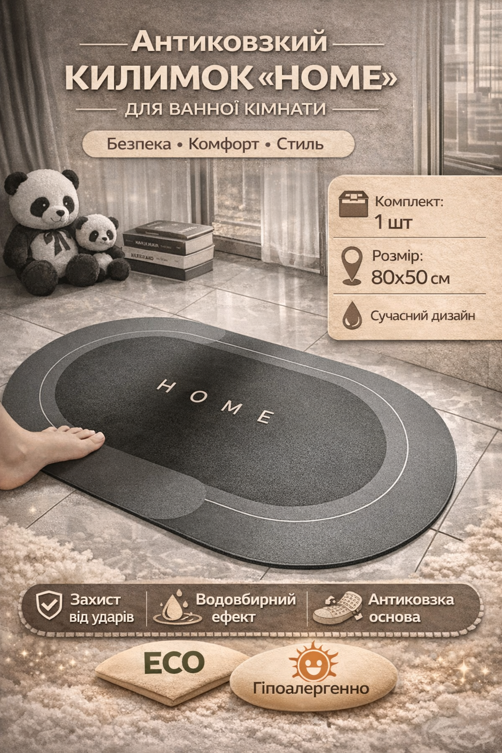 Килимок добре поглинає вологу, швидко висихає та легко очищується. Оптимальний розмір 80×50 см підходить для ванної кімнати, душової або біля умивальника.