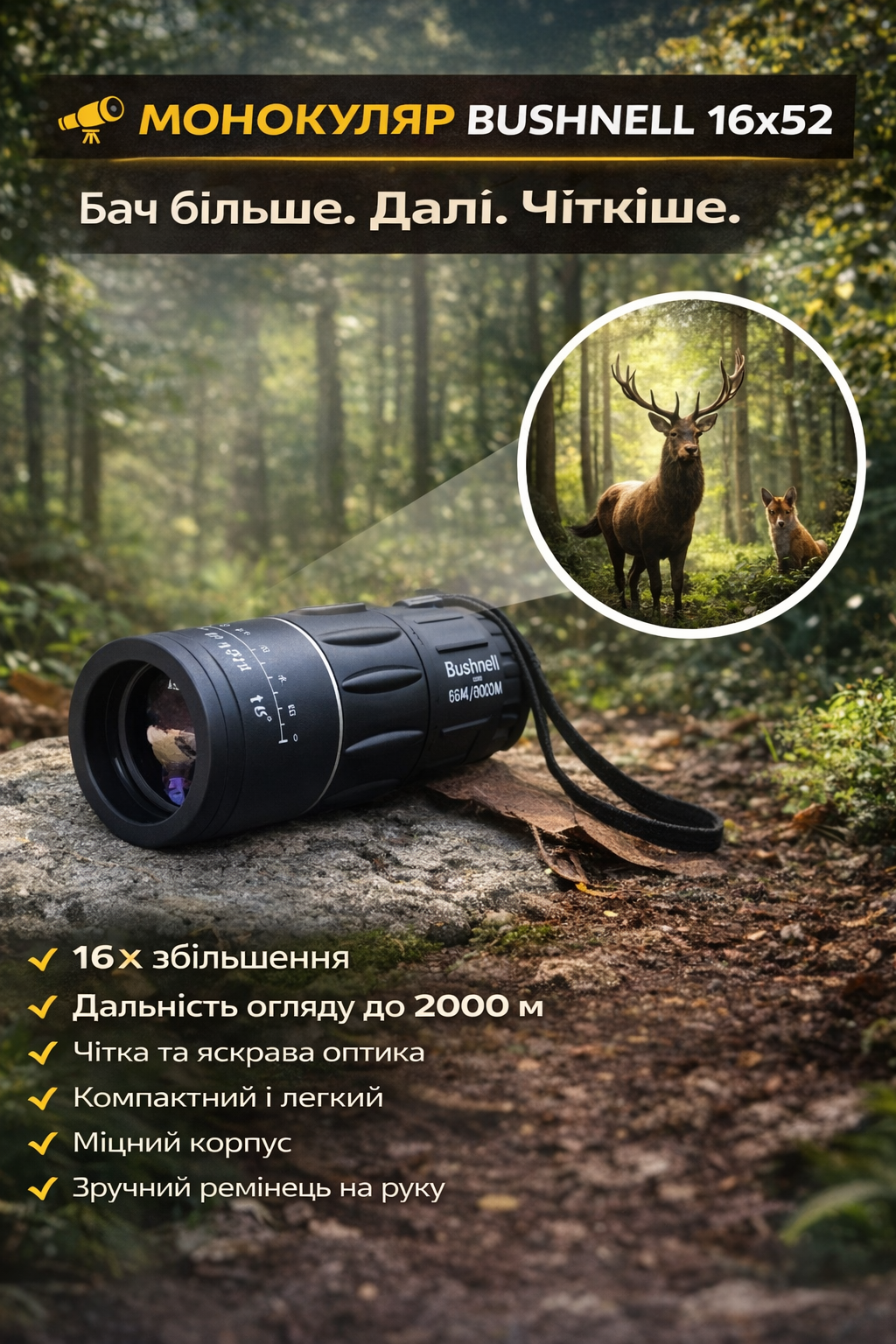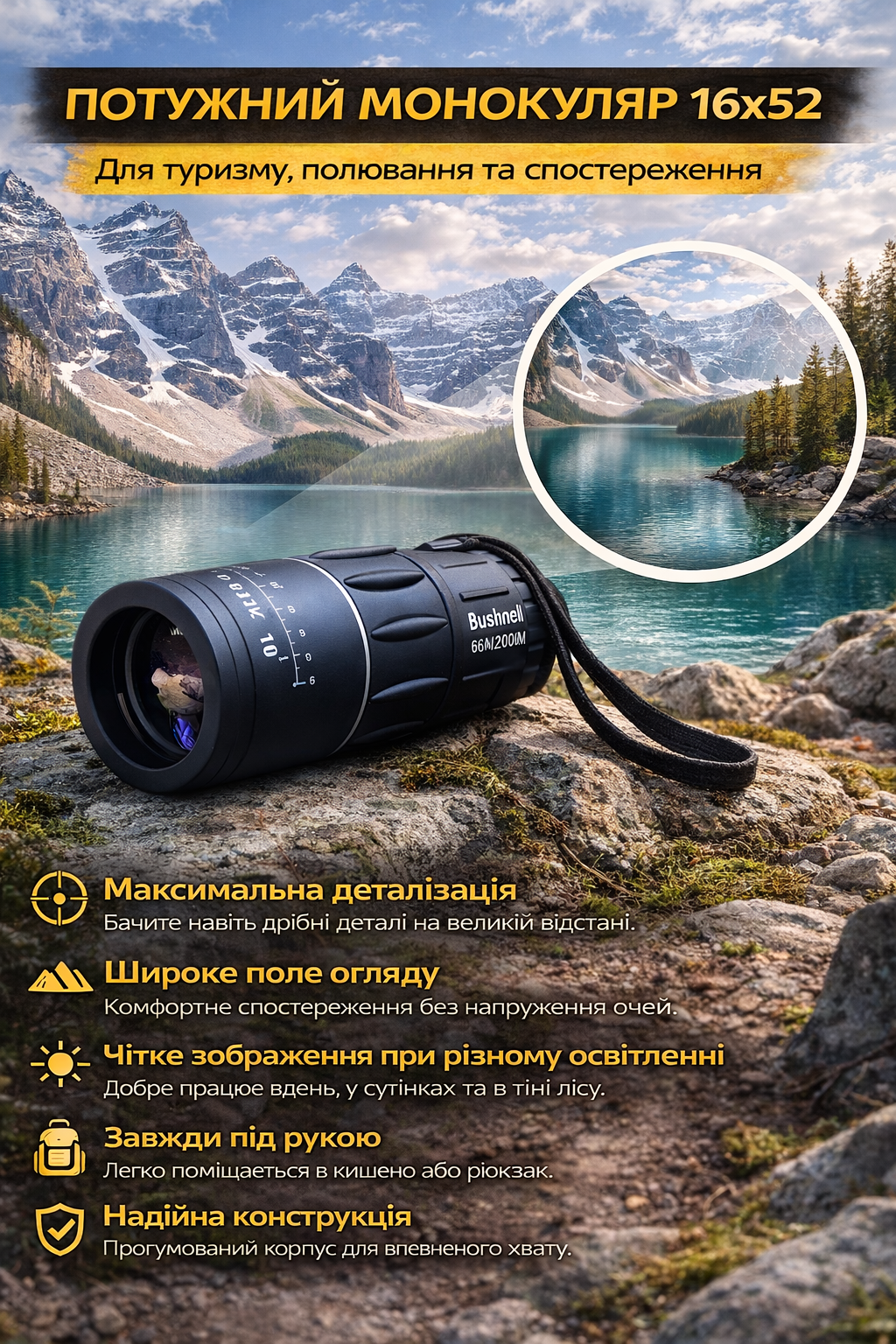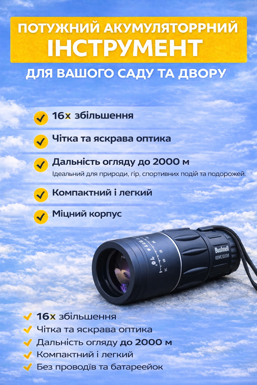 Потужне 16× збільшення дозволяє бачити навіть дрібні деталі на великій відстані.