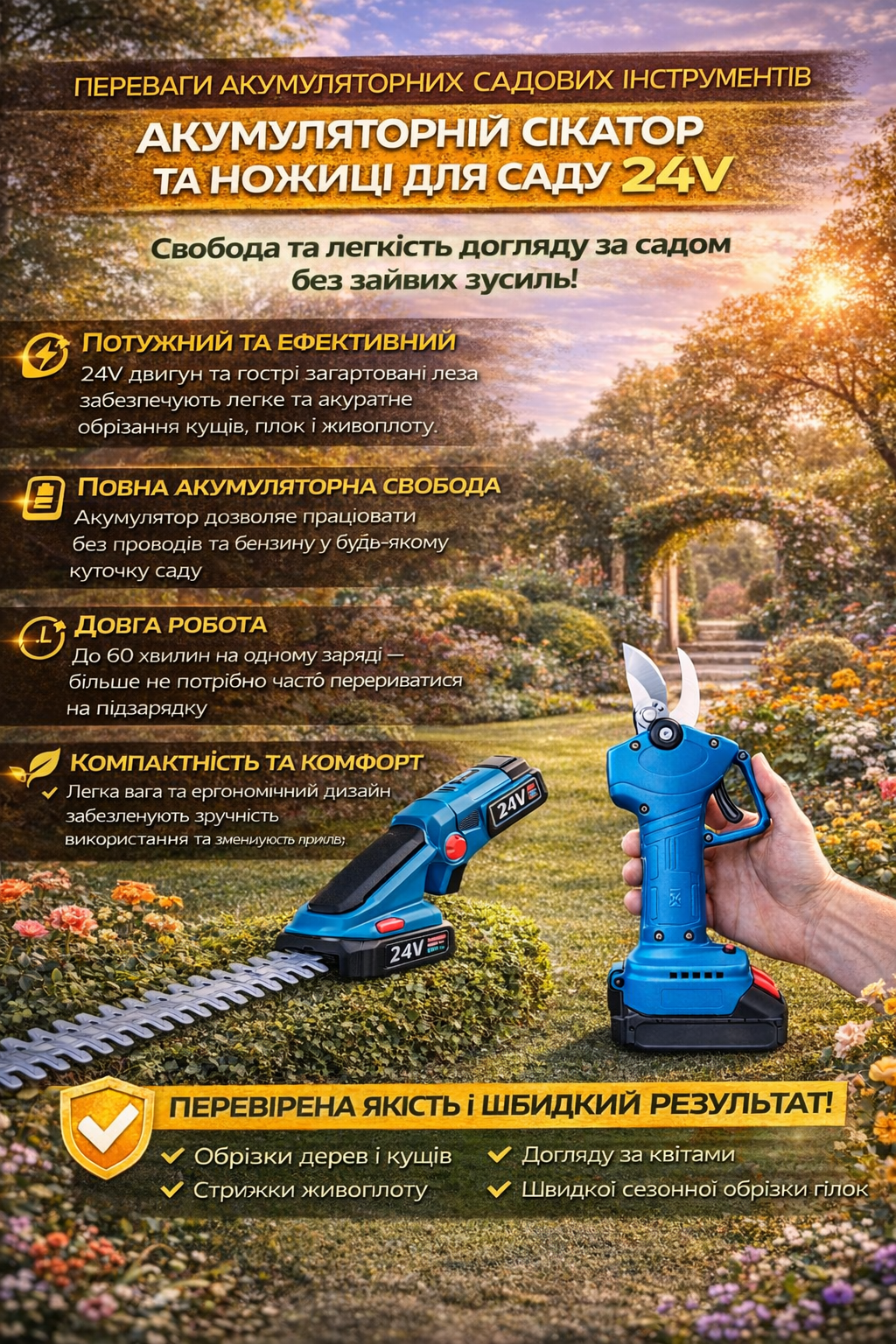 🔋 Акумуляторний сікатор та ножиці для саду 24V Li-ion