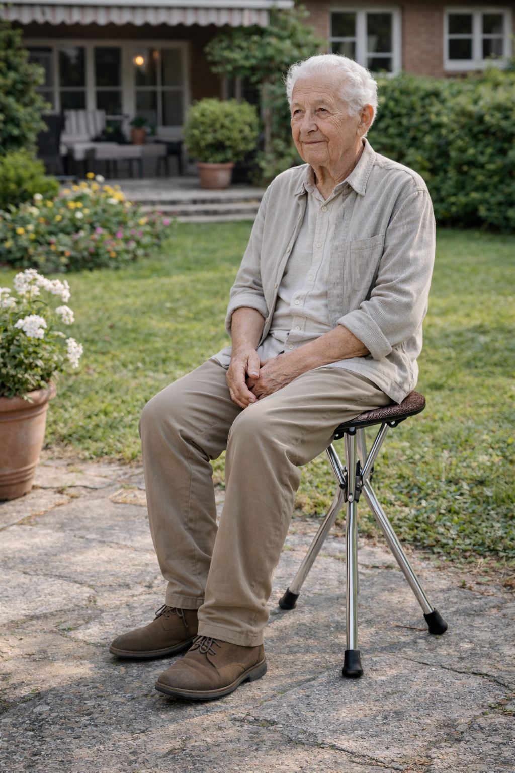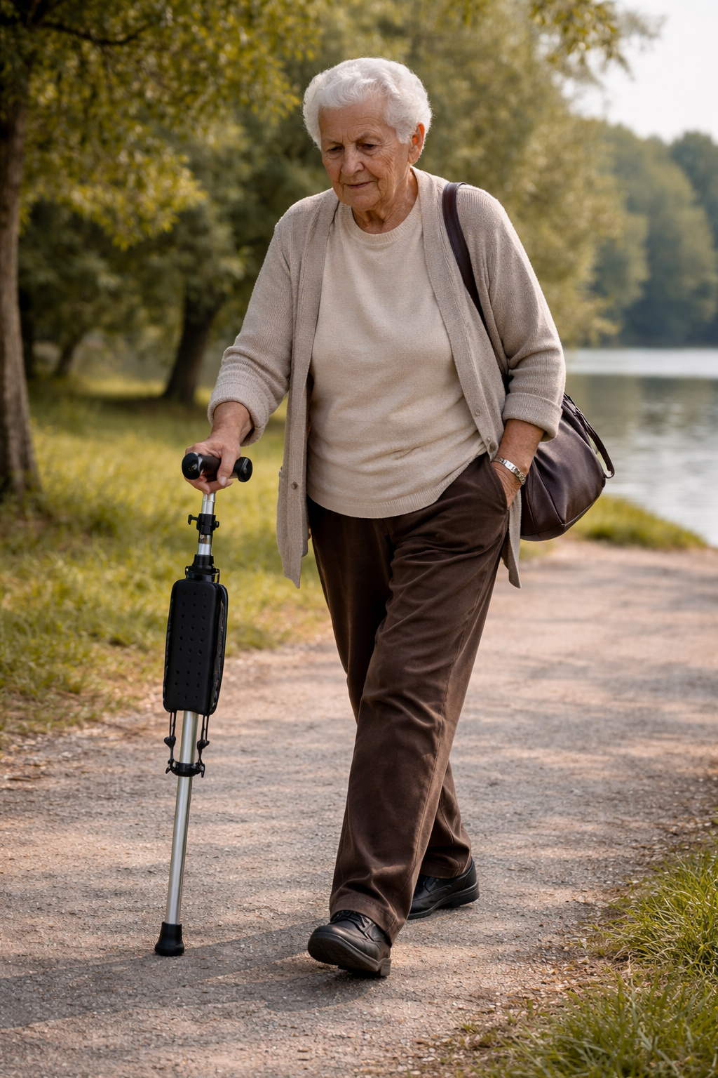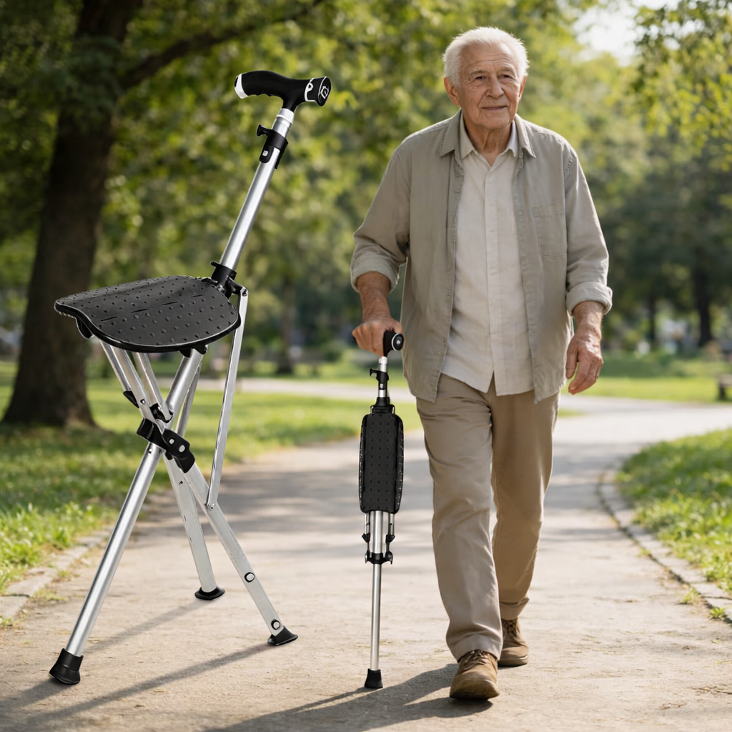 Складана тростина-стілець поєднує функції опори та зручного сидіння. Легко складається, не займає багато місця та зручно переноситься під час прогулянок або подорожей.